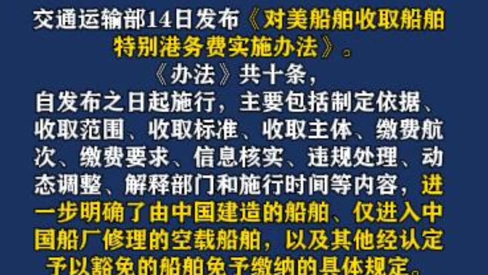 中方對美船舶收取特別港務(wù)費(fèi),今起正式施行